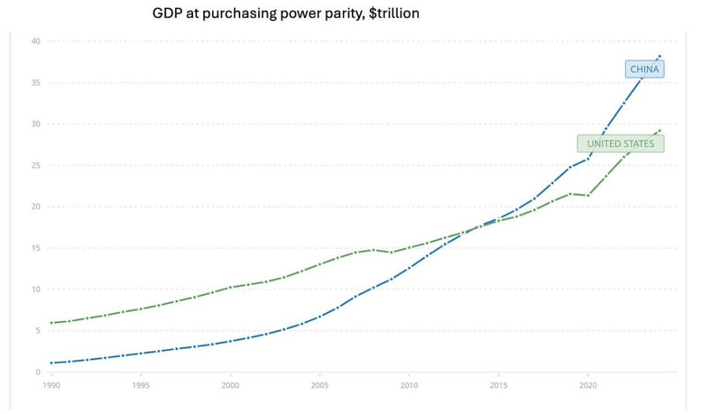 此外,美国拥有“盟友”。正如菲利普斯·奥布莱恩(Phillips O’Brien)所强调的那样,联盟作为国家力量的源泉,往往被严重低估。中国有时会基于利益形成短暂的同盟,但也仅限于此。相反,美国能够——并确实——建立起强大的盟友体系。因为美国不仅仅是一个国家,更是一种理念和价值体系。而这些价值是与民主世界的其他国家所共同拥有的。尤其要记住,欧洲虽然有时看起来无力,但在经济规模上,它与中国和美国同属超级大国之列。